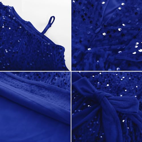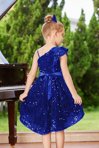 • Design Features of Our Dress for Girls: Our Girls sequin dress not only features shiny material, but also adorable irregular high-low hem. The cute one-shoulder strap is embellished with ruffled edges. It comes with detachable and adjustable shoulder straps, as well as a hidden zipper at the back. Additionally, it includes a fixed velvet waist belt that can be tied at the back or in the front.