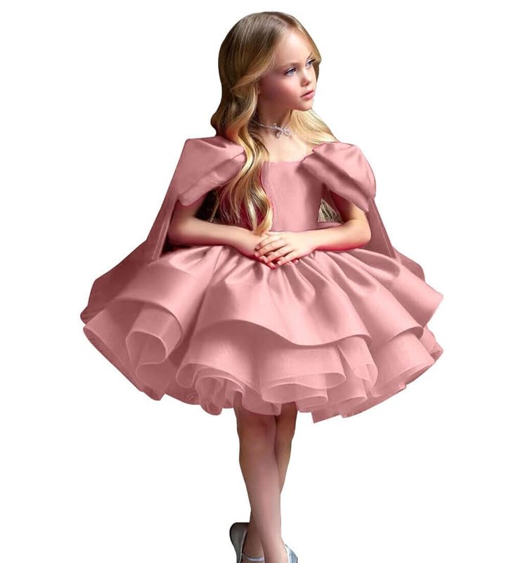 Satin Flower Girl Dress Toddler Short Girl Pageant Dresses A Line Short Puffy Birthday Party Dress with Bow 2025 TJ13 5