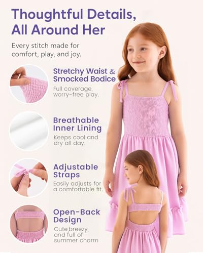 • 【Flexible Fit with Smocked Top】: Stretchy bodice gently hugs the body while allowing full freedom of movement; elastic waist provides a secure fit that adapts as she grows.