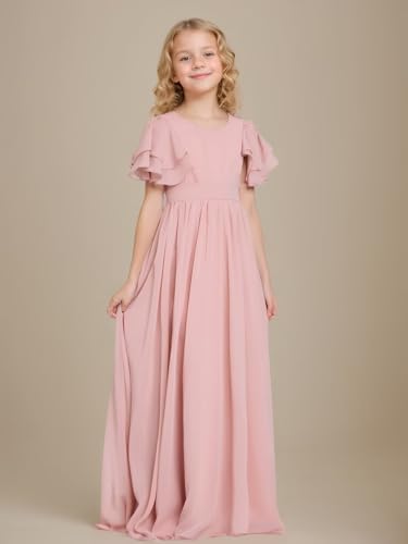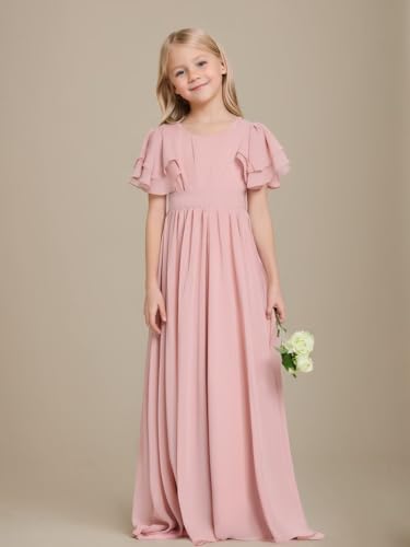 Junior Bridesmaid Dresses 2025 Short Sleeve Chiffon Flower Girl Dresses Party Pageant Gowns for Girls 6
