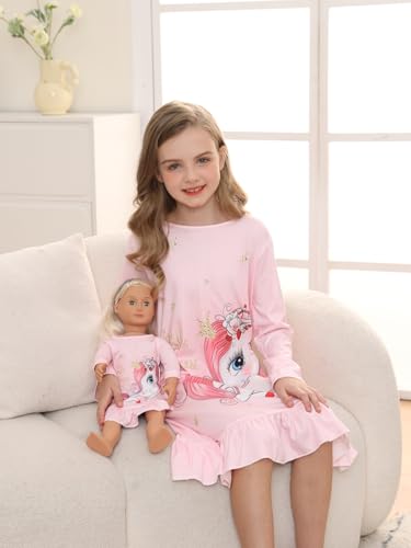 Bow Dream Toddler Girls Dress Cute Cartoon and Matching American Girl Doll Clothes for Girls 6