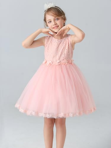 Lace Tulle Girls Flower Girl Dress with Pearls 3D Flower Appliques Tutu A Line Formal Party Dresses 3