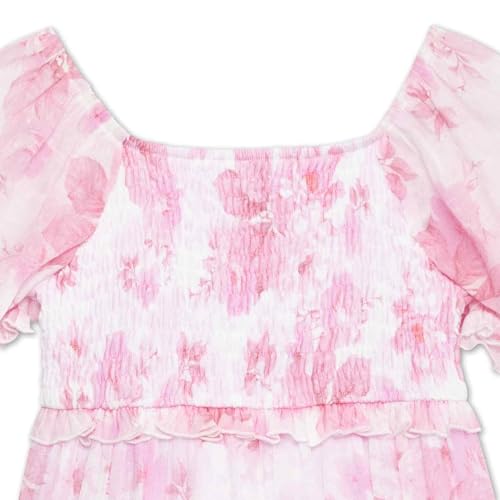 HOT ! Speechless Girls' Smocked Floral Print Puff Sleeve Party Dress with Lace Trim