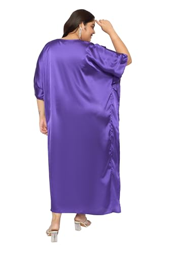 More information about Plus Size Kaftan Women Dress Comfortable Solid Satin Nighty Maxi Dresses Kimono Sleeve Nightwear Caftan