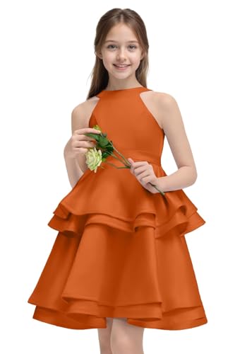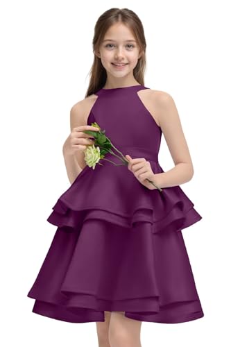 O Neck Flower Girl Dresses Tiered Satin Pageant Dresses for Girls Short Formal Party Dress 6