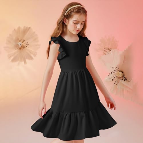 • 【Comfortable Design】 - This sundress features a loose fit and is made from soft, breathable fabric for a cozy feel. The crew neck and ruffle flutter sleeve add an elegant touch,making it perfect for your little girl to enjoy during summer days.Our girls dress is stretchy, and skin-friendly fabric, ensuring all-day comfort for your little one