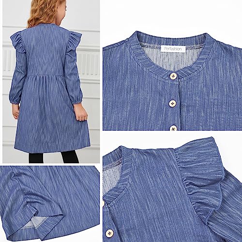 Perfashion Girls Denim Dress Flutter Long Sleeve Classic Jean Blue Button Down Dresses for 6-15 Years 5