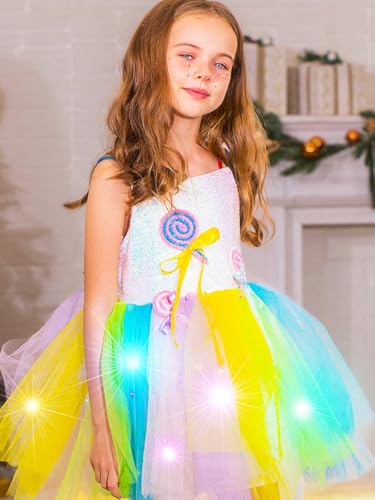 EASEDAILY Girls Light Up Sequin Tutu Dress Sleeveless LED Rainbow Tulle Dress Glow Princess Birthday Party Dresses 7