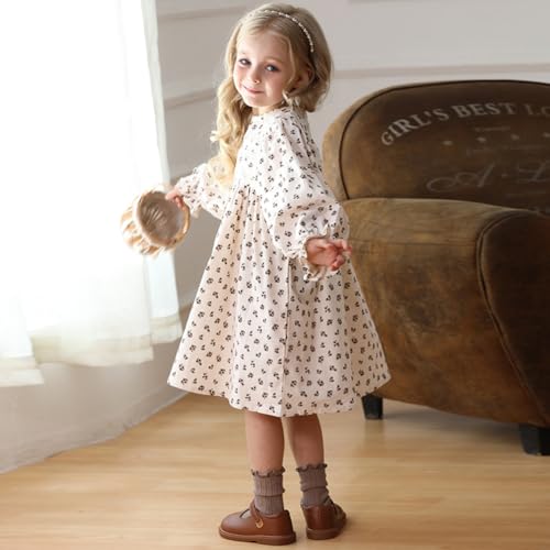 • Adorable Design: spring fall winter girls floral ruffle dress, puff long sleeve, frilly decoration at front chest and crew neck, create a sweet appearance. With 2 or 3 buttons at back, convenient to put on and take off. Flattering A-line dress style with empire waist, makes a loose fit effect, fits for all body shape, all girls will feel free to wear it.