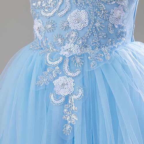 • Ball Gown for Girls: Toddler kids flower girls long pageant birthday wedding party sequins dresses sweet junior princess dance prom floor length flare a-line puffy tulle dresses. Available in four colors, white, purple, blue or pink. Sleeveless round neck sparkle floral sequins beads ruffle tulle tutu dress party dress, Invisible zipper and self-tied straps, two sashes can be tied a bowknot at back for suitable fitting to the body. Adorned with fold-over high-low tulle. Birthday gift for girls.