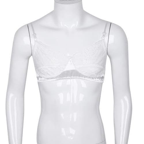 More information about Moily Men's Sissy Floral Lace Sheer Mesh Halter Neck Spaghetti Straps Wire-Free Unlined Bra Top