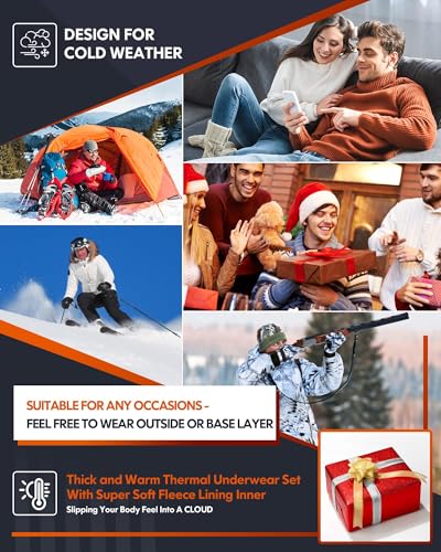 • Keep Warm All Day:The men's long johns thermal set is made of ultra-skin-friendly lining fleece,like a second skin,which can reduce heat loss, the thermal underwear set keeps you feeling light but warm in the cold winter