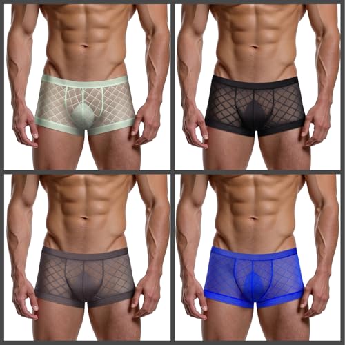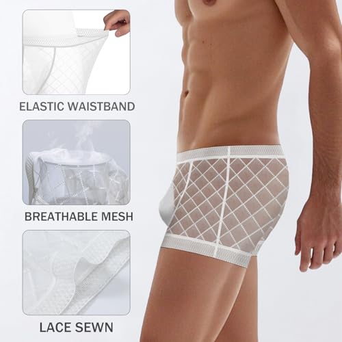 YINYOUYU Mens See Through Boxers Sexy Mesh Lace Trunk Underwear Seamless Thin Bulge Pouch Boxer Briefs 4