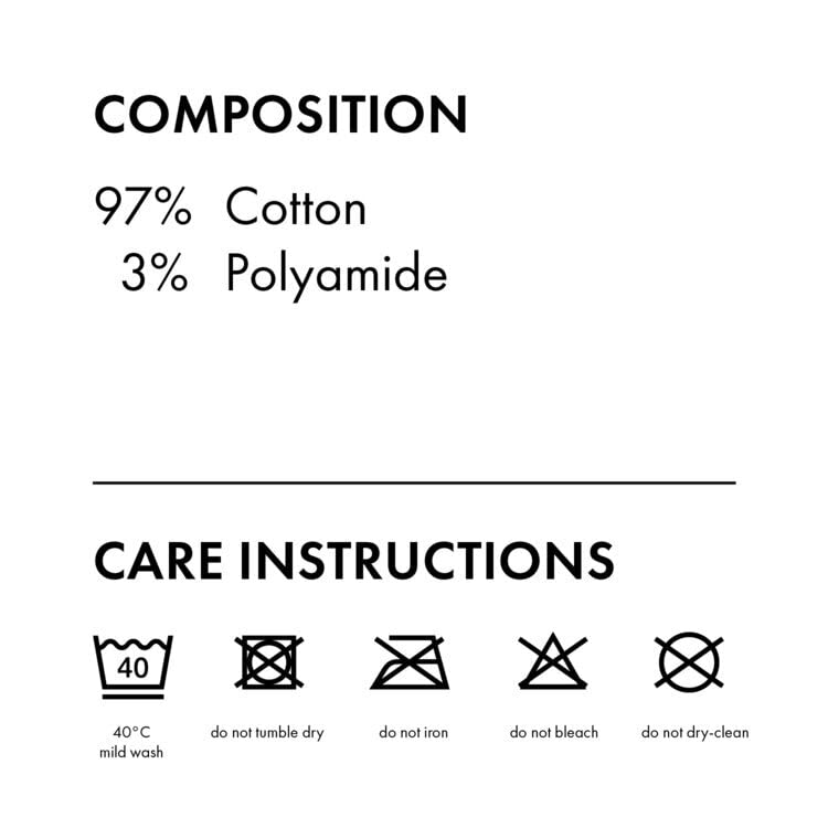• Fabric type: 97% Cotton, 3% Polyamide