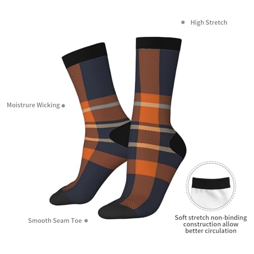 HOT ! Navy Blue And Orange Plaid High Ankle Crew Socks Casual Mid Calf Dress Socks Long Tube Socks For Men Women