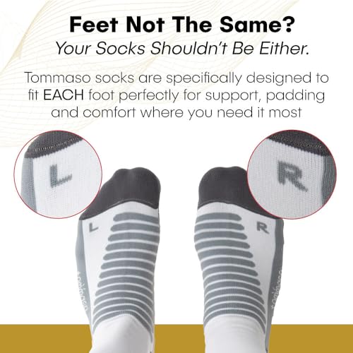 • READY FOR PEAK PERFORMANCE: Get ready for your rides with confidence in Tommaso padded bike socks. Designed to stay put, they offer seamless comfort, perfect for cyclists of all levels. With targeted padding, long rides are a breeze. Choose Tommaso for quality and peak performance. Elevate your sock game for the perfect ride experience. Plus, these amazing socks are left and right specific, so comfort and peak performance is delivered in a streamlined package.
