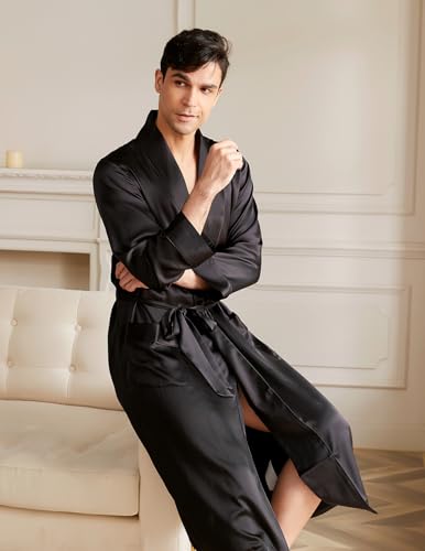 THXSILK Men’s Silk Robe Long Bathrobes, Luxury Lightweight Sleepwear, Two Pockets, Pure Mulberry Silk loungewear 1