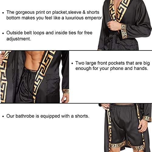 N&D Eyong Men's Luxurious Silk Feeling Bathrobes Long Sleeve Satin Kimono Robe with Shorts Sleepwear Set Printed Bathrobes… 3