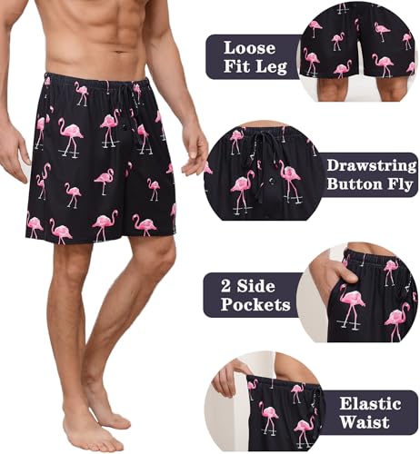 • DIVERSE STYLES: You can choose simple solid colors or bright and interesting pattern prints such as Bigfoot, Sharks, Flamingos and Labrador. Men's Pajama Bottoms can be perfectly matched with T-shirts, vests, shirts, pajamas, and the perfect combination of comfort and fashion makes it your first choice for men’s sleepwear shorts.