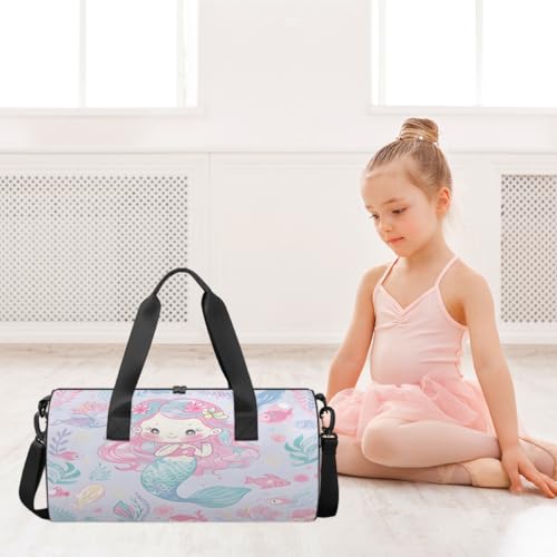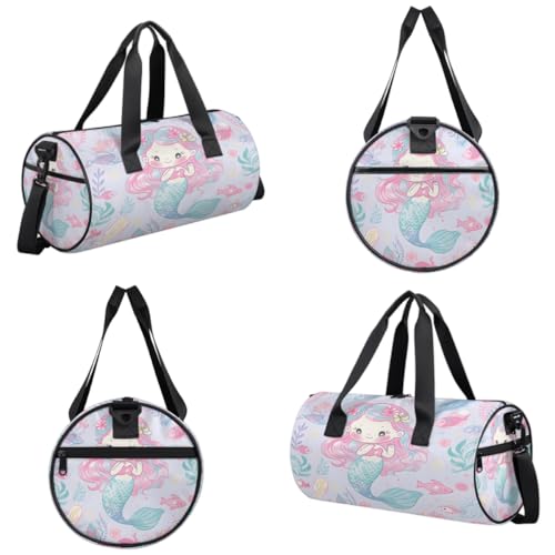 Cute Mermaid Round Barrel Sports Fitness Bag, Pink Travel Luggage Bag, Reusable Handbag, Suitable For Men and Women 7
