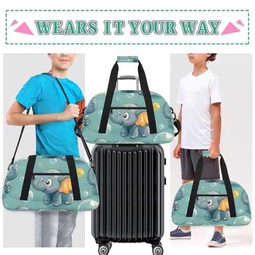 Cute Elephant Print Gym Travel Duffle Bag for Boys - Gymnastics Sports Dance Bag with Front Zipper Pocket for School Practice or Overnight Travel Weekender Sleepover Tote Bag Elephant 3