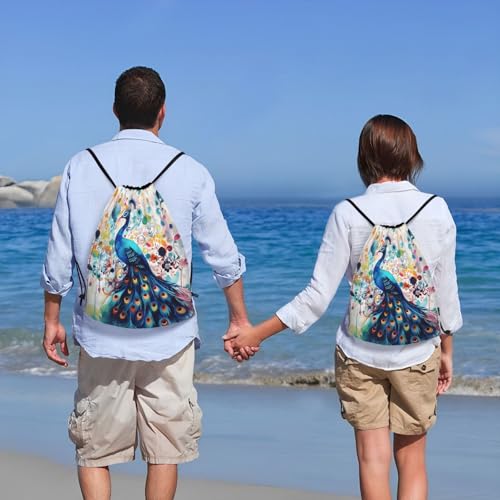 HOT ! Drawstring Bag Lightweight Small Gym Bag for Women Color Peacock Soccer Backpack for Sports Travel