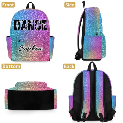 Personalized Dance Backpack Bag for Women, Custom Large Capacity Shoulder Bags, Waterproof Ballet Casual Daypack, Colorful 3