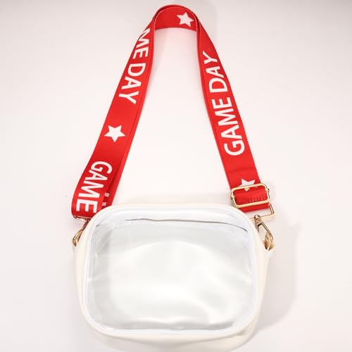 • ★ Game Day Purse Strap: Enhance your stadium bag approved clear bag with a stunning game day purse strap. White bold "GAME DAY" and star pattern is repeated on the red strap that beautifully represent your team's colors, showing off your team spirit wherever you go! Whether you're heading to a sports game, tailgate party, or any athletic event, this embellished bag strap is the perfect addition to your favorite handbag, tote, shoulder bag and dame bag
