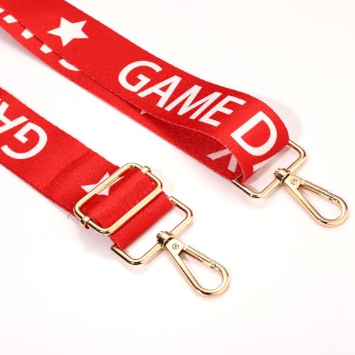 • ★ Crossbody Bag Straps: Be Game Day outfit ready with this stunning Red white purse strap! Each football strap is intricately crafted with premium polyester fabric, detachable with gold hardware clips on either end, can easily clips onto clear stadium-approved bags or any purse, providing both functionality and style. The wide strap is designed to be adjustable and can be worn across the body or on the shoulder for added versatility, whether you’re heading to the stadium or music concert