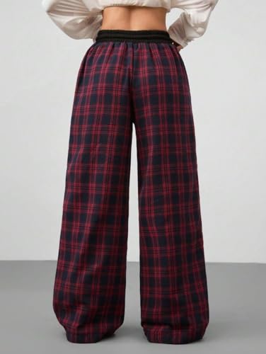 HOT ! Plaid Wide Leg Y2k 2000s 90s Pants Cute Drawstring Loose Baggy Pajama Women Streetwear Grunge Clothes