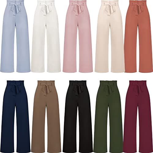HOT ! Dress Pants Women,Wide Leg Pants for Women,Smocked Waist Pants with Belt,Loose Straight Leg Flatting Pants