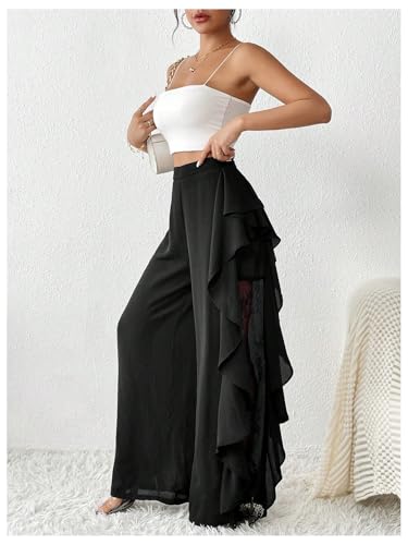 HOT ! Verdusa Women's Lace Mesh Sheer Wide Leg Pants Ruffle High Waisted Dress Pants