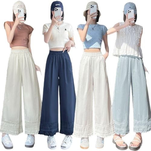 More information about Women's Lightweight Wide-Leg Pants Fashion Lace Cropped Pants Loose Casual Straight Pants