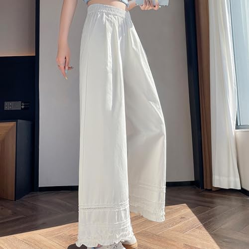 Women's Lightweight Wide-Leg Pants Fashion Lace Cropped Pants Loose Casual Straight Pants 1