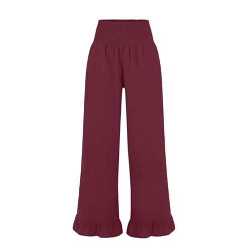 HOT ! Wide Leg Linen Pants for Women Smocked Elastic High Waisted Ruffle Hem Palazzo Pants Casual Drawstring Beach Trousers