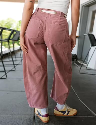 Hooever Womens Corduroy Barrel Wide Leg Baggy Pants Casual Drawstring High Waisted Loose Palazzo Trousers 7