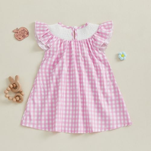Toddler Girl Back to School Outfit First Day of School Pre K Kindergarten Smocked Short Sleeve Dress Summer Clothes 4