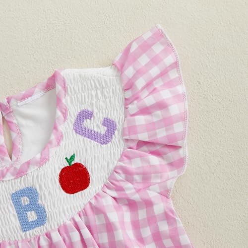 • Design: Adorable toddler baby girl first day of school outfit, embroidered apple and ABC print, toddler baby girl ruffle short sleeve smocked dress. Cute and chic toddler baby girl first day of preschool kindergarten dress, makes your little princess more cute and attractive