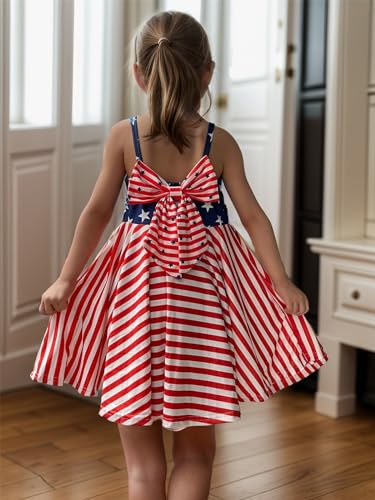Girls Fourth of July Outfit Toddler American Flag Dress Stars Stripes Swing Sleeveless Dresses 2-7 Years 5