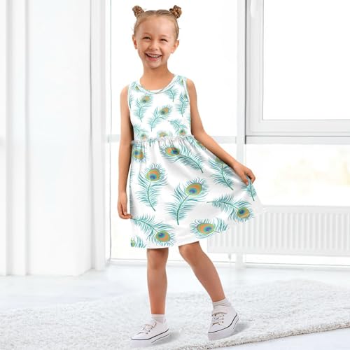 Girls Peacock Feather Dress Sleeveless Dress Summer Cotton Sundress 8Y 6