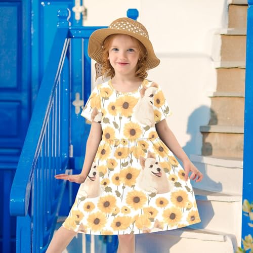 Toddler Corgi Dog Sunflower Girls Dresses Short Sleeve Casual Dresses 2T 202a3817 2