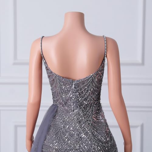 Pearls Spaghetti Straps Mermaid Evening Dress Side Slit Formal Prom Dress Wedding Bride Party Gown 7