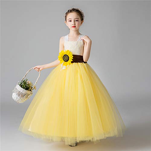 Yellow Tulle with Sunflower Belt Flower Girl Dress Pageant Dresses Prom Wedding Birthday Party 1