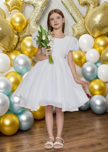 Toddler Flower Girl Dresses for Wedding Tulle Puff Sleeve Prom Ball Gown for Girls Short Formal Party Dress 4