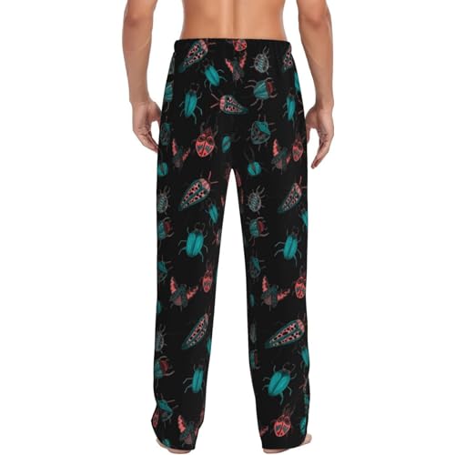 Colorful Insect Print Adult Sleep Lounge Pajama Pants,Super Soft Men Pajama Bottoms With Pockets Drawstring 6