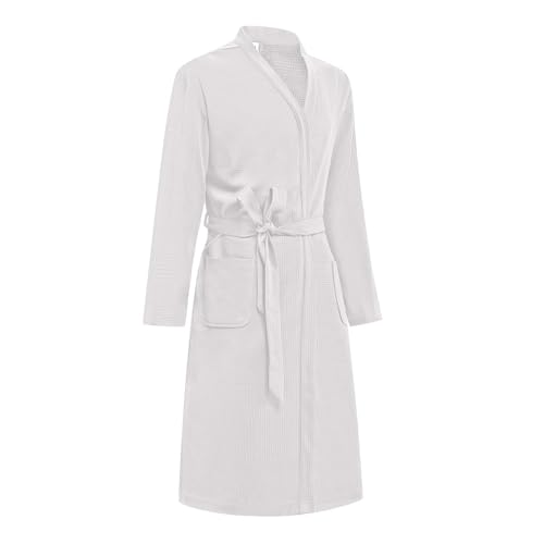 HOT ! Waffle Unisex Bathrobe with Belt, Soft and Absorbent Robe for Men and Women Bath Long Sleeve Lightweight Robes