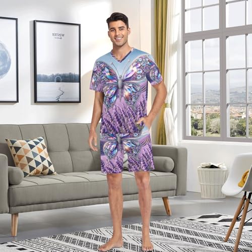 Men's Summer Pajama Set Sleepwear Top and Pajamas Shorts Soft Lounge Set, S-XXL 1