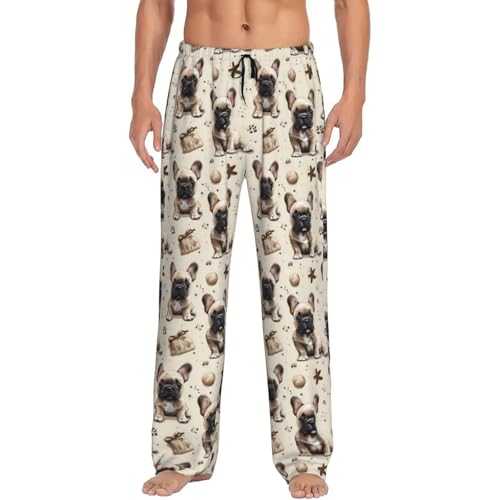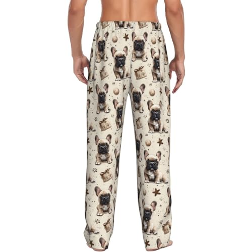 Mens Pajama Pants - Brown Cute French Bulldog Print Soft Sleep Lounge Pants For Men, Casual Pj Bottoms With Pockets 1
