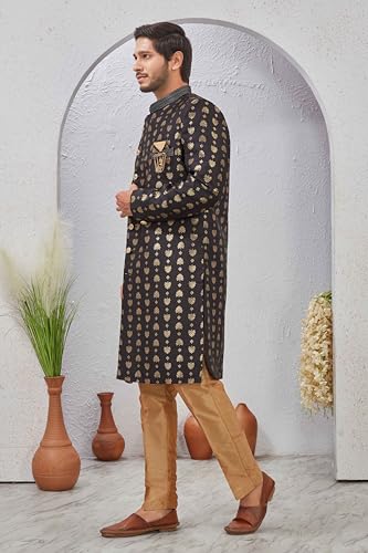 HOT ! Indian Designer Wedding Festive Wear Jacquard Indo-Western Sherwani Pajama Set For Men