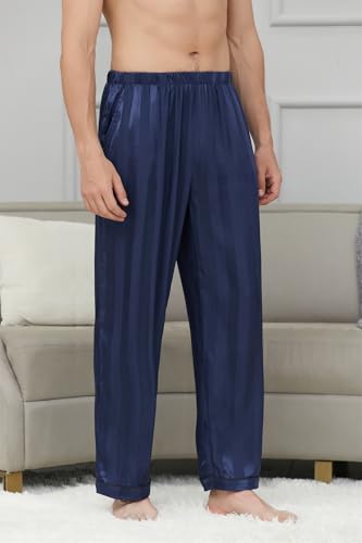 HOT ! Cromoncent Men's Satin Silky Pajama Pants - Pocketed Soft Cozy Lounge Sleepwear with Elastic Waist,Jacquard Navy,Small